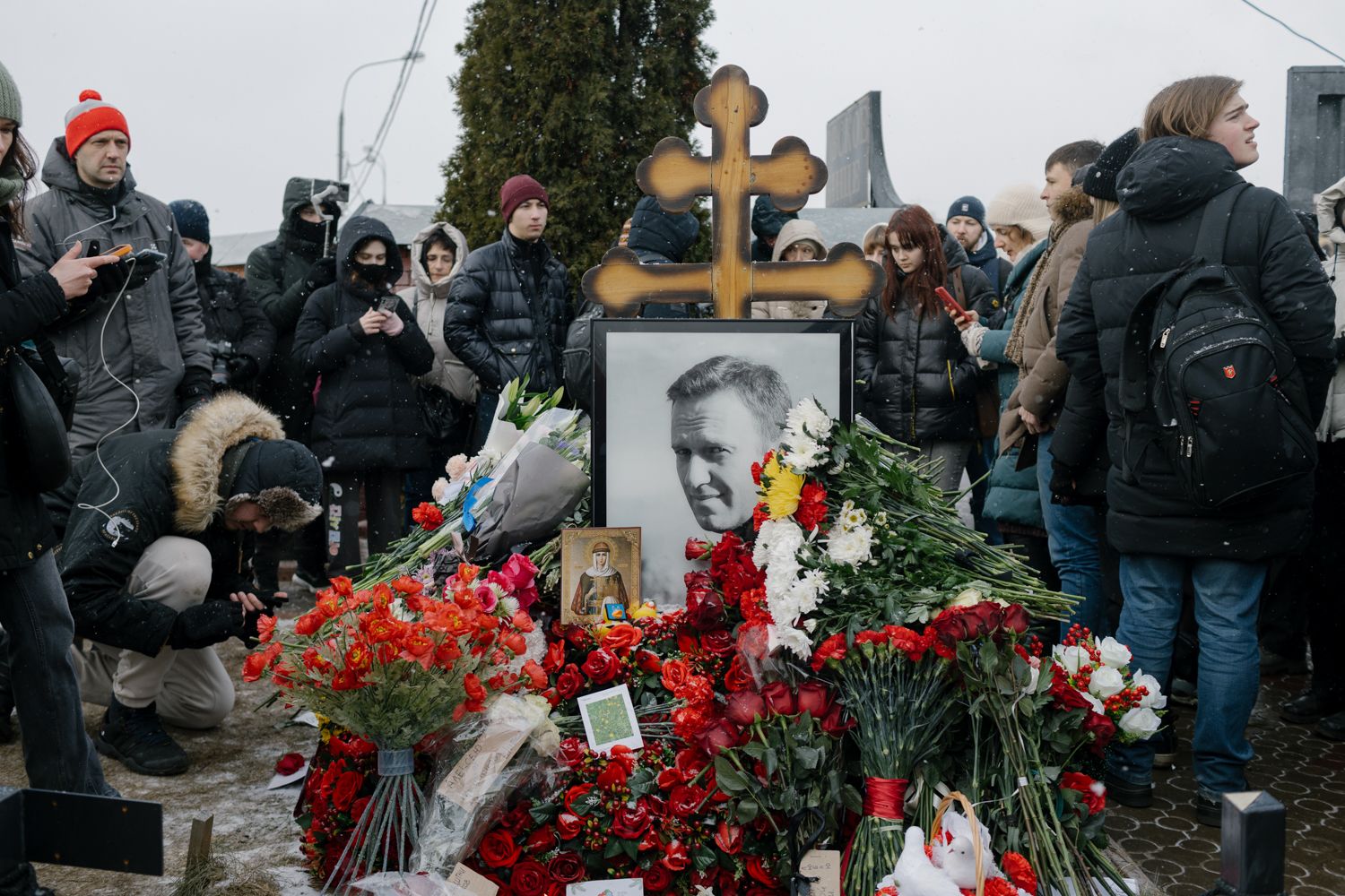 Ровно год назад в российской колонии был убит Алексей Навальный. В годовщину его гибели сторонники политика организовали мемориалы по всему миру. С самого утра 16 февраля люди приносят цветы на могилу Навального на Борисовское кладбище в Москве, в других городах люди приходят к памятникам жертвам политических репрессий. Некоторых пришедших к мемориалам в российских городах задерживает полиция, у других переписывают личные данные. В этом материале «Медуза» собирает фото и видео с акций памяти Алексея Навального.