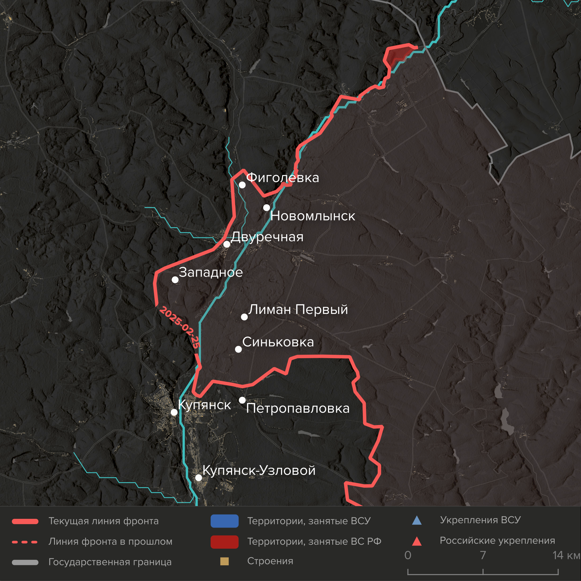 - На Купянск наступать они пока не могут: на плацдарм еще не удалось завести тяжелую технику. Поэтому российские войска пытаются сначала пробиться к границе РФ, чтобы облегчить снабжение войск на плацдарме.