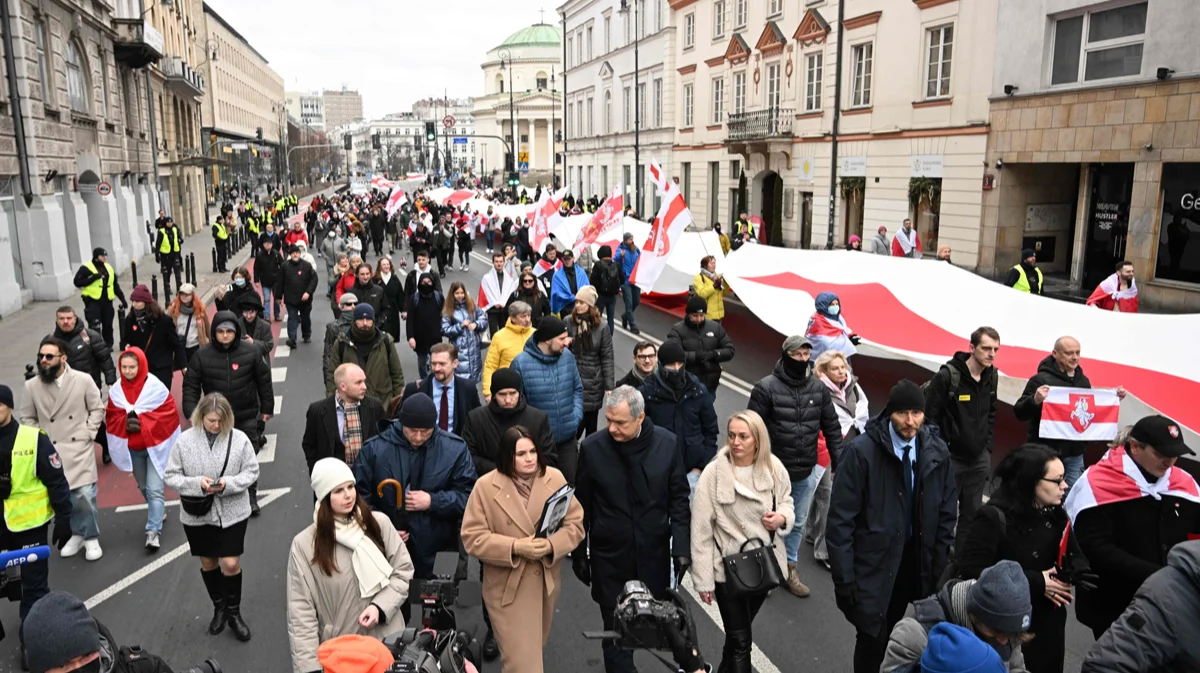 Митинг, организованный белорусской диаспорой в Варшаве, Польша, 26 января 2025 года. Фото: Sergei Gapon / AFP / Scanpix / LETA