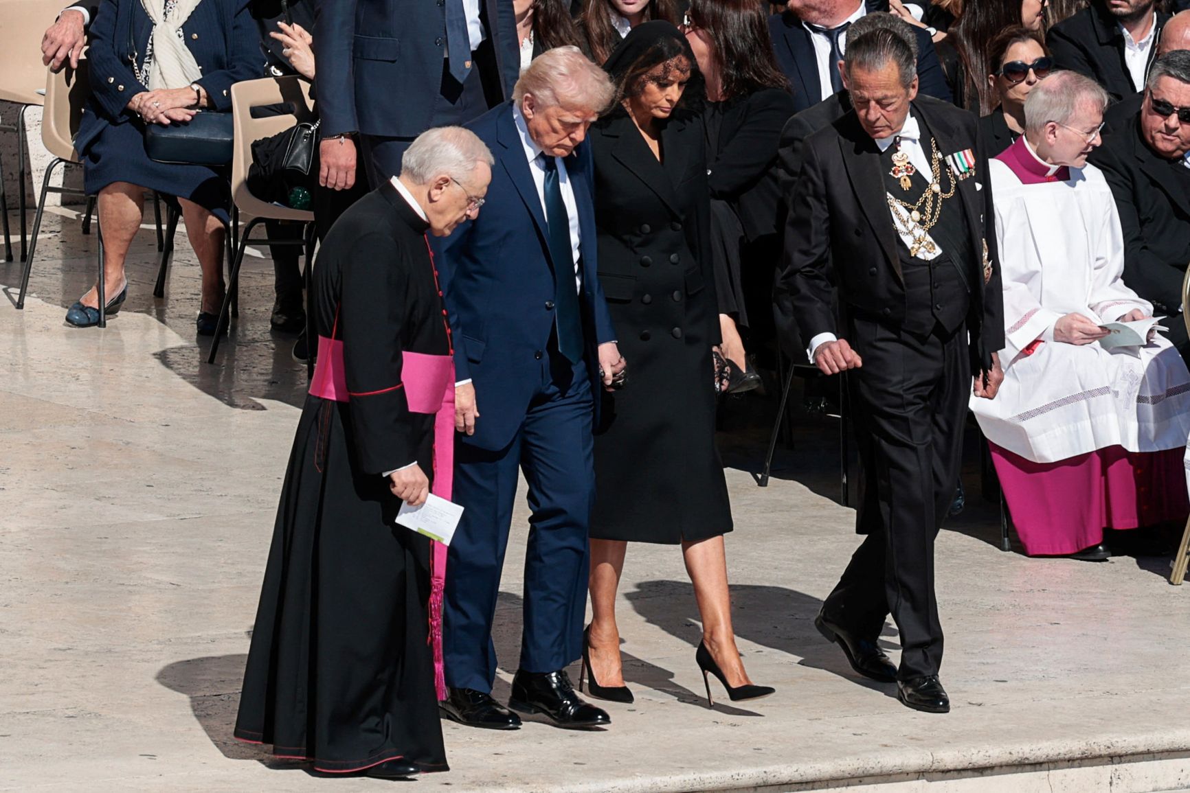 В церемонии приняли участие более 50 делегаций. В Ватикан прибыли президент США Дональд Трамп, канцлер Германии Олаф Шольц, президент Франции Эммануэль Макрон, премьер-министр Италии Джорджия Мелони и глава Украины Владимир Зеленский. Присутствовали также представители православных церквей и религиозных общин из Азии, Африки и Латинской Америки.