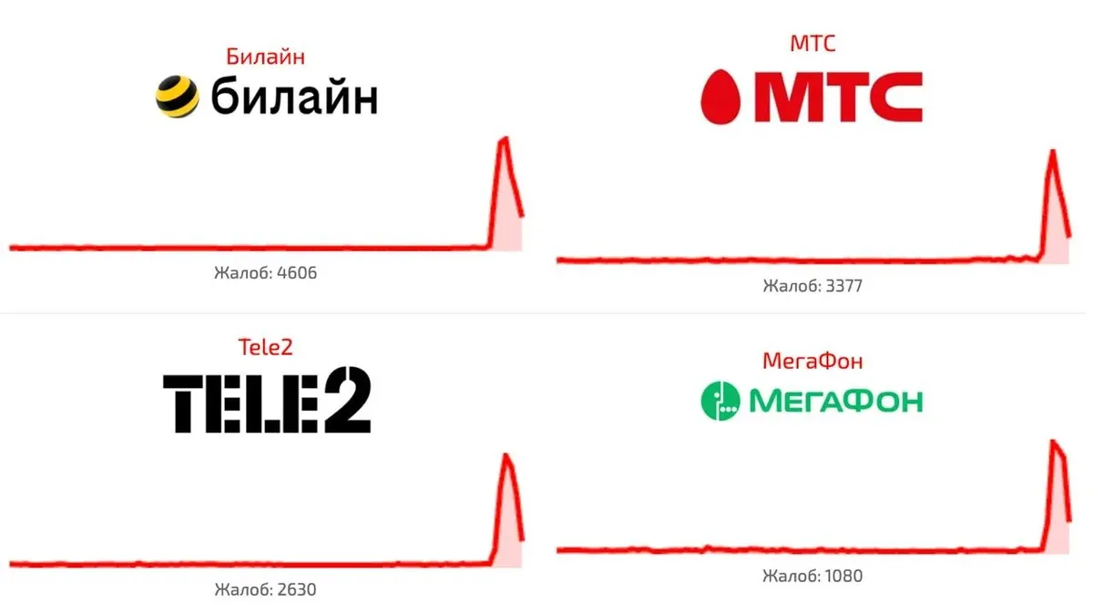 В России зафиксирован масштабный сбой в работе мобильных операторов, сообщают СМИ. По данным сервиса Downdetector, начиная с 11 утра по столичному времени у абонентов «Билайна», «Мегафона», МТС, Tele2 и Yota в ряде крупных городов наблюдаются проблемы с доступом к интернету или полное отсутствие сотовой сети.