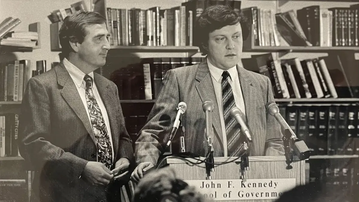 Грэм Аллисон и Григорий Явлинский представляют Grand Bargain в Гарварде, май 1991 года. Фото: yabloko.ru