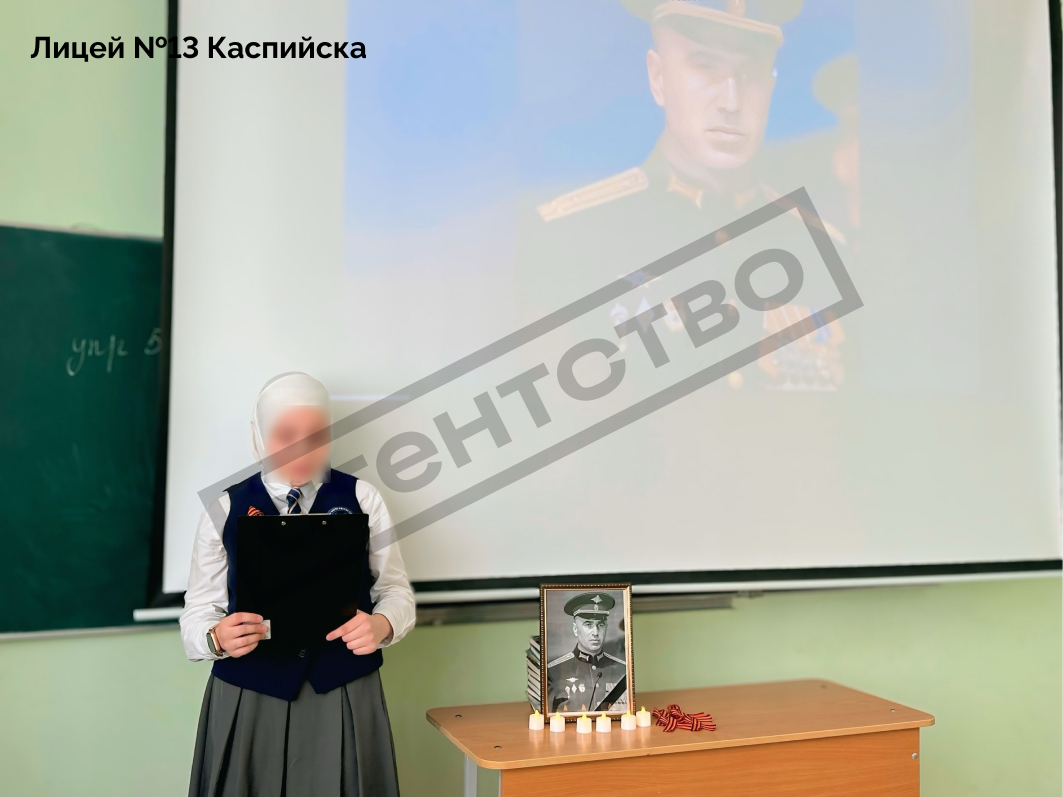 Детали. В лицее № 13 Каспийска открыли памятный уголок, посвященный Шихабидову. Здесь разместили его фотографии и материалы о боевом пути военного. А в Буйнакской средней школе-интернате № 3 прошли внеурочные мероприятия для учеников 7−9 классов. Подростки украсили кабинет фотографиями военного и георгиевской лентой, провели минуту молчания и зажгли «свечи памяти». Во время мероприятия школьникам зачитали речь министра образования Дагестана Яхъи Бучаева. После публикации фотоотчет из аккаунта буйнакской школы был удален, но остался в веб-архиве.
