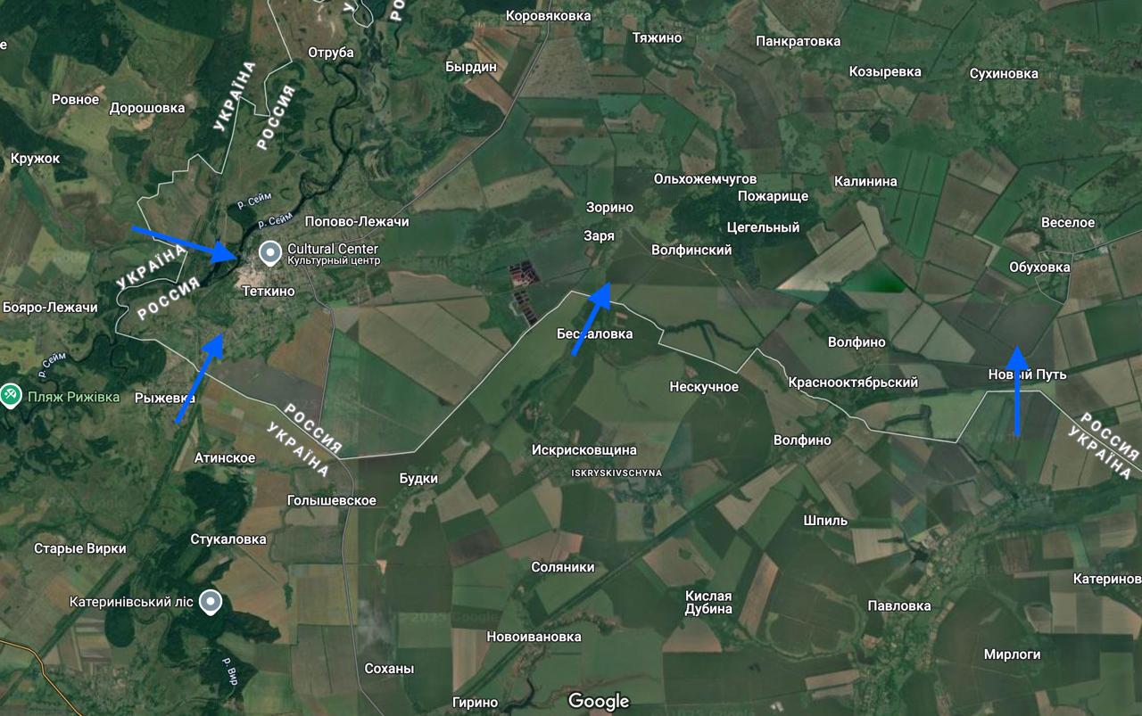 Украинские силы пытаются изолировать российские подразделения вблизи Теткино и по всему Глушковскому району, полагает Институт изучения войны (ISW). С этим согласны «Два майора»: «враг выбрал это направление, надеясь изолировать район боевых действий за счет рельефа и подрыва мостов». «Там довольно большой участок ограничен широким и глубоким Сеймом <…>, а по суше от Снагости Кореневского района придется проходить по тонкому горлышку, где противник будет не только перед подразделениями, но и с левого фланга, то есть с Сумской области», — написал z-блогер Роман Алехин.
