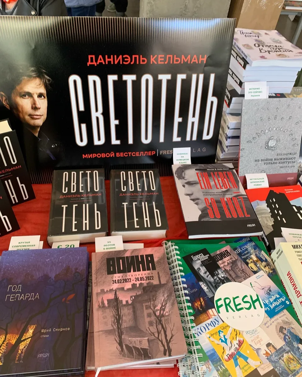 В России до 2022 года книги Кельмана выходили в издательстве АСТ, но потом писатель отказался от работы с российскими издательствами. В итоге «Светотень» вышла в молодом русскоязычном издательстве Fresh Verlag из Дюссельдорфа в переводе Александры Берлиной. Мы поговорили с основательницей и главным редактором издательства Любовью Мачиной о том, как маленькому издательству в изгнании удалось заполучить в портфель самого Кельмана, — и о жизни тамиздата в целом.
