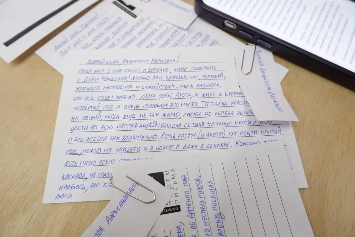 Два года назад, в апреле 2023 года, в столице Армении возникла эмигрантская инициатива Letters of Freedom. Активисты, придумавшие эту инициативу, и многие постоянные участники с тех пор переехали в другие страны, но Letters of Freedom продолжает работу. Корреспондент «Новой в Армении» сходил на вечер писем и рассказывает, кто и о чем пишет из Еревана в российские СИЗО и колонии, а также, почему бумажные письма лучше электронных. Один из участников вечера — бывший политзаключенный, который накануне эмиграции едва снова не оказался за решеткой.