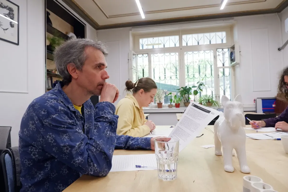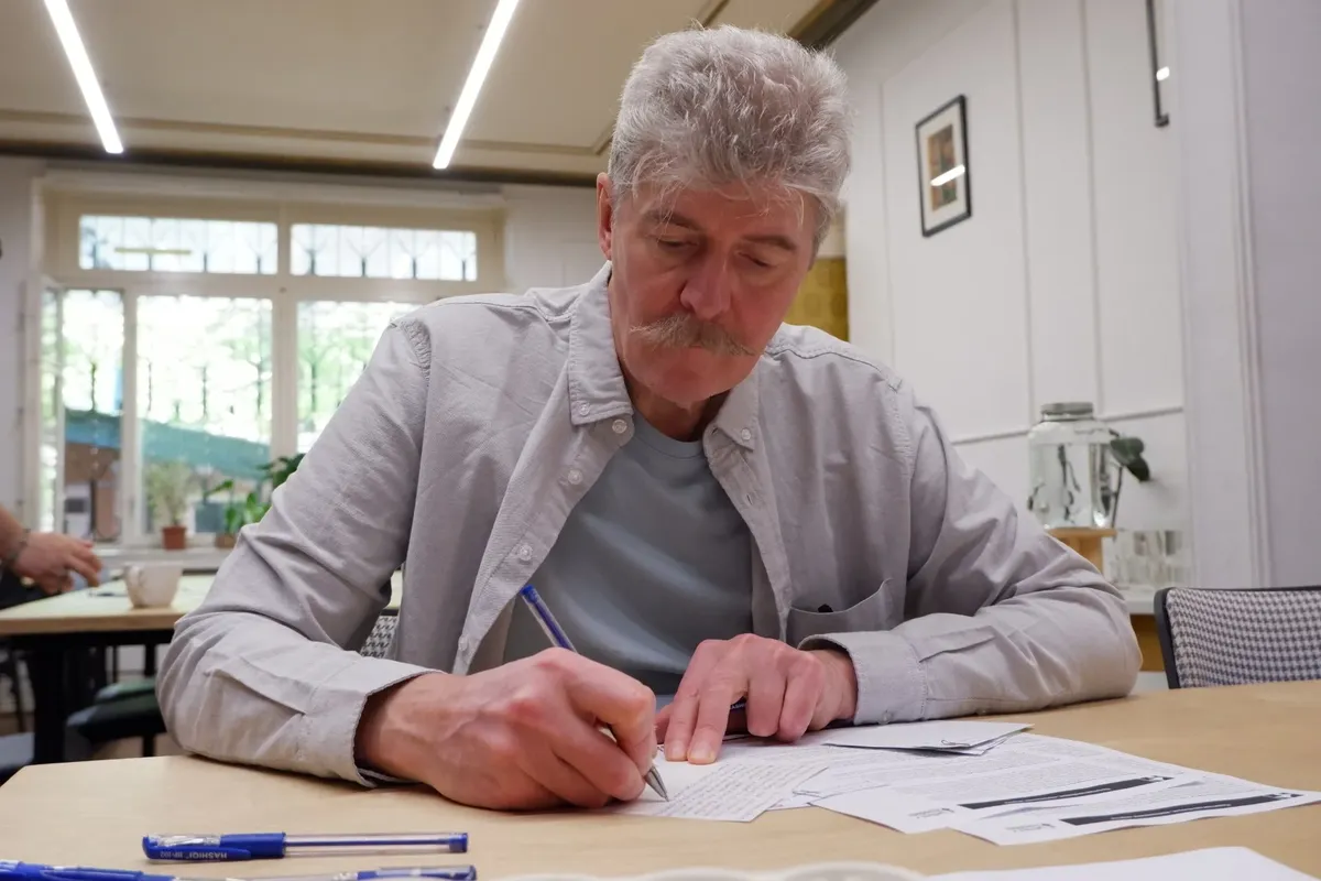 За соседним столом Алексей, который эмигрировал в Армению в 2022-м и на такие вечера ходит с самого начала существования инициативы Letters of Freedom.