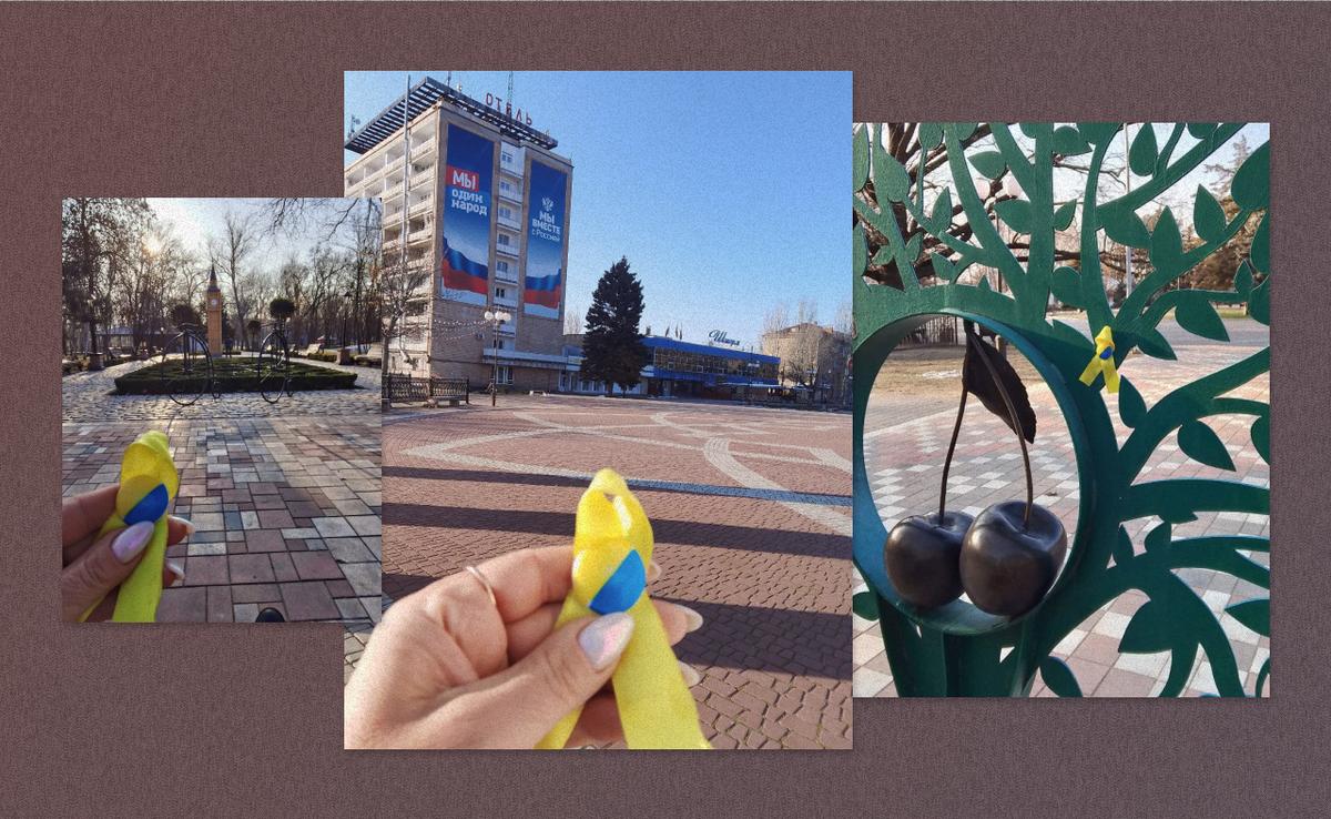 — Брала желтые ленты и на фоне города, например, парка или площади, где было узнаваемо, что это Мелитополь, делала фотографии. Потом скидывала администратору канала, и они распространяли их — показывали, что Мелитополь не русский, а проукраинский и что люди [c такими взглядами] там есть, просто прячутся и боятся.