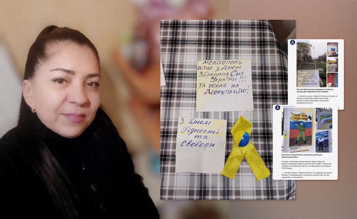 Жительница Мелитополя Севиль еще весной 2022 года проводила свою 17-летнюю дочь в свободную от оккупации часть Украины, а сама осталась ухаживать за пожилой, почти не ходячей свекровью. Как-то Севиль обнаружила в «Телеграме» канал движения гражданского сопротивления оккупации «Жовта стрічка» (желтая лента — укр.) — и начала с ним сотрудничать.