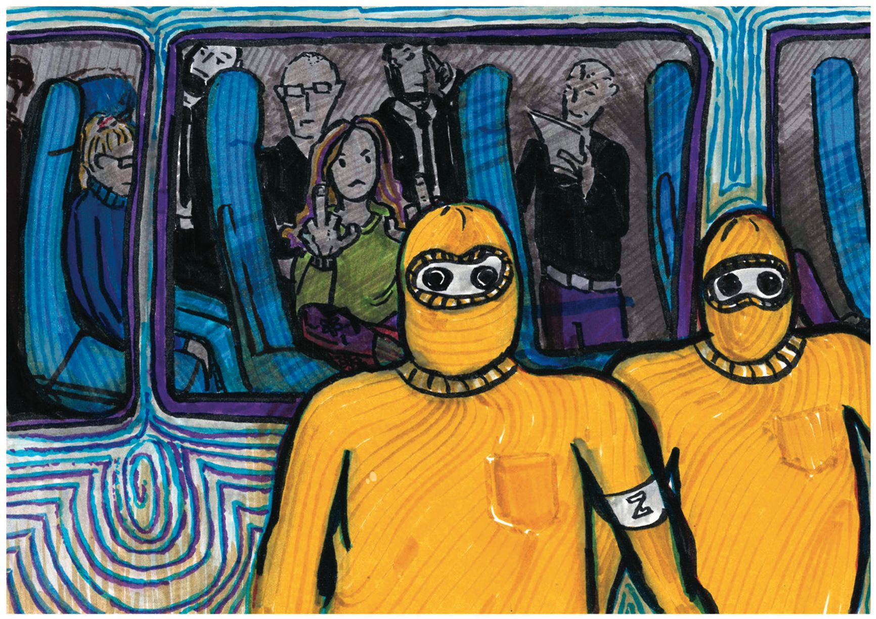 В странном самолёте. Рисунок Саши Скочиленко