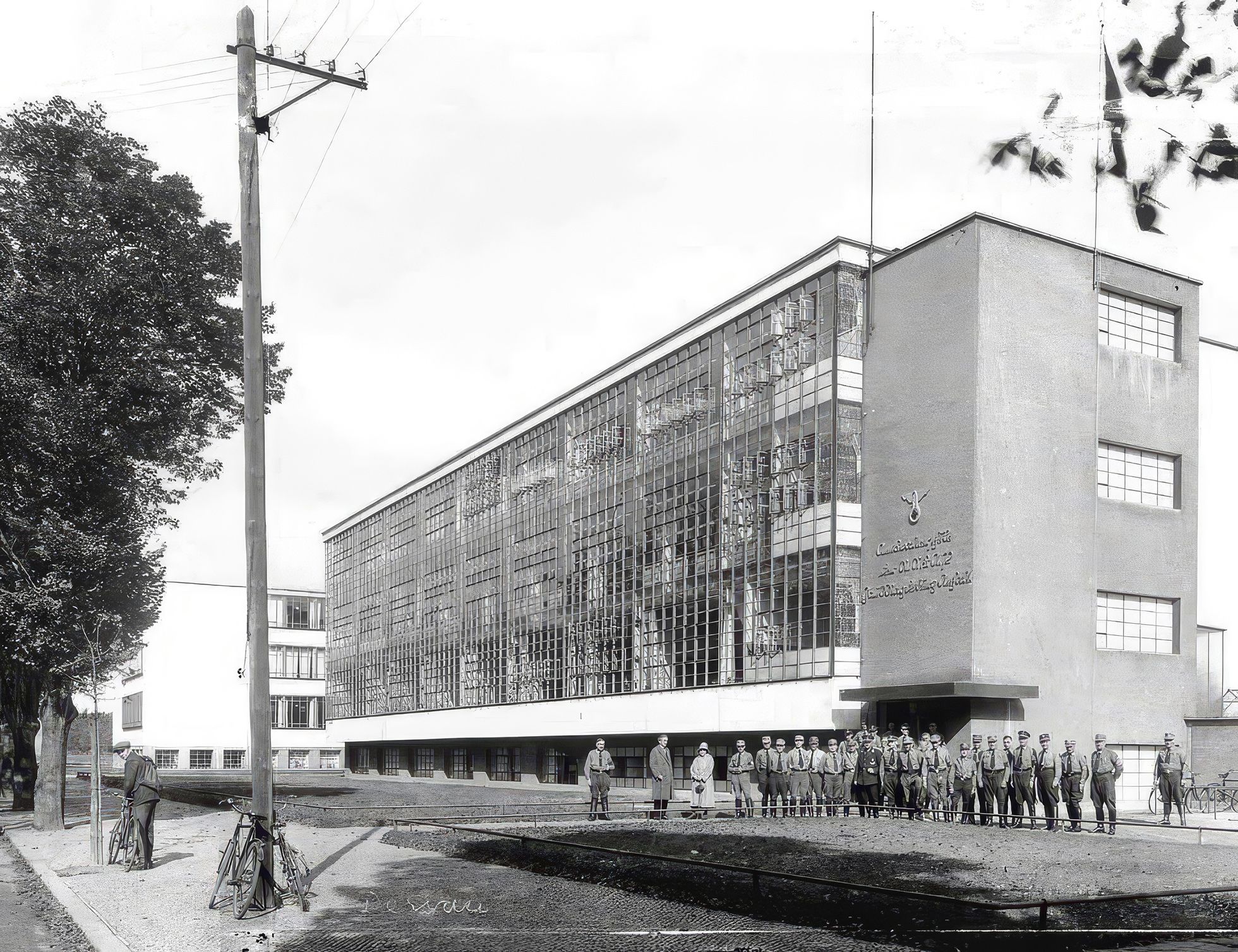 Несмотря на угрозы нацистов, школу в Дессау все же не снесли, но в 1930-е на фасаде установили баннер со свастикой, а само здание перепрофилировали: среди прочего здесь учились женщины и партийные функционеры НСДАП. В последние дни Второй мировой войны здание серьезно пострадало — самая невероятная часть фасада, пронзающее все этажи навесное остекление, уничтожили бомбардировки 7 мая 1945 года.