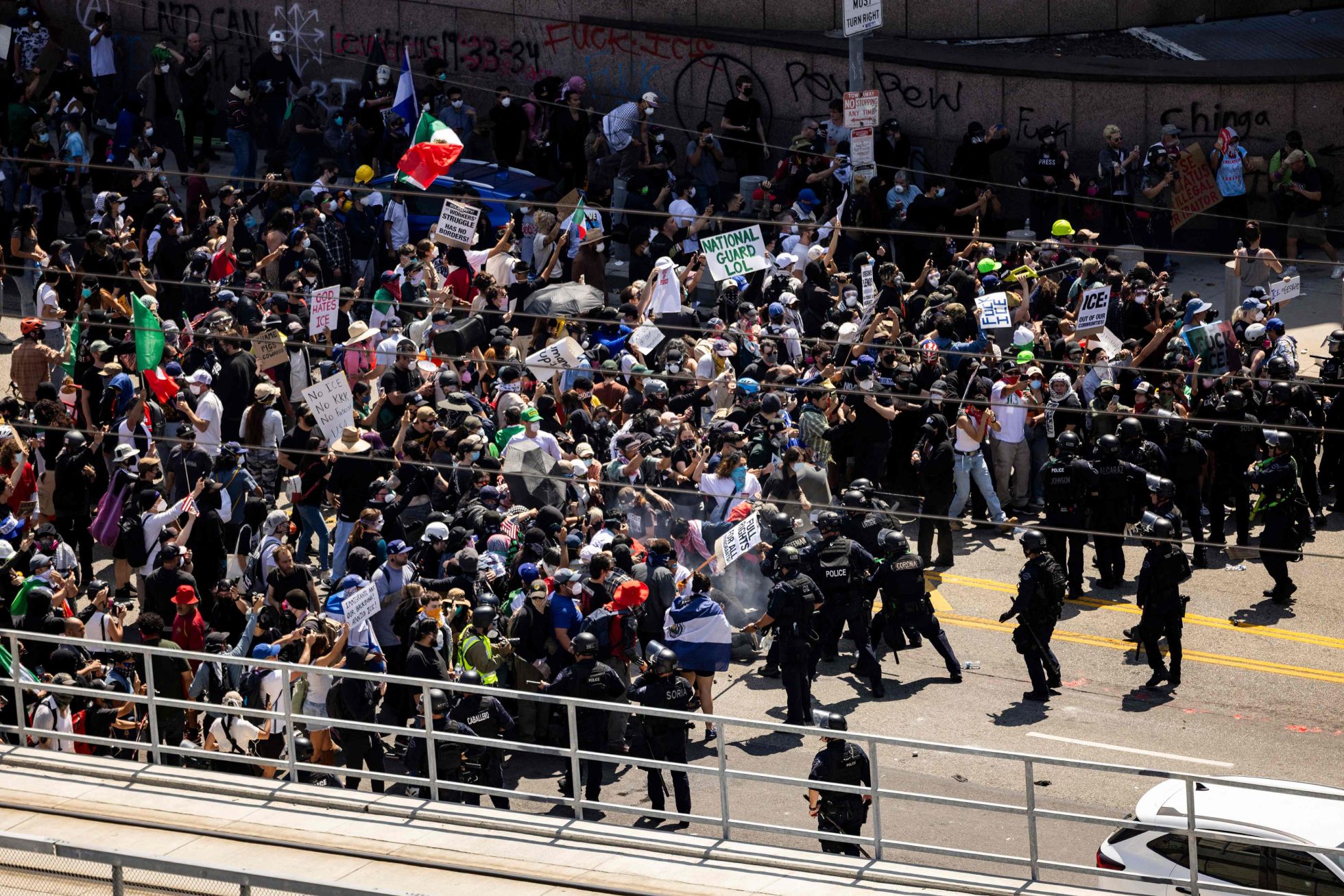 Полиция применила против протестующих светошумовые гранаты и резиновые пули. Президент США Дональд Трамп 7 июня распорядился привлечь к подавлению беспорядков Национальную гвардию. Причем он сделал это без запроса со стороны властей штата, что вызвало недовольство мэра-демократа Лос-Анджелеса Карен Басс и губернатора Калифорнии Гэвина Ньюсома, также представляющего Демократическую партию.