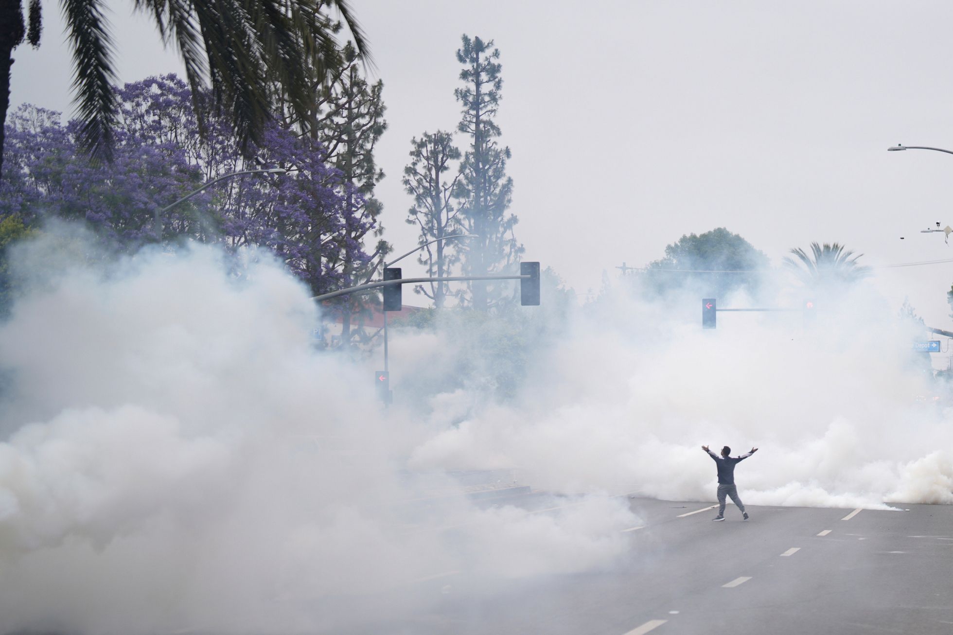 Eric Thayer / AP / Scanpix / LETA Для разгона протестующих в Парамаунте применили слезоточивый газ. Среди жителей этого города, расположенного к югу от Лос-Анджелеса, много выходцев из стран Латинской Америки, некоторых из них задержали во время рейдов против мигрантов. 7 июня 2025 годаApu Gomes / Getty Images / AFP / Scanpix / LETA Участница протестов в Парамаунте пытается молоком нейтрализовать слезоточивый газ. 7 июня 2025 годаBarbara Davidson / Reuters / Scanpix / LETA Участники акции протеста и сотрудники правоохранительных органов у центра содержания мигрантов ICE в Комптоне (пригород Лос-Анджелеса), куда поместили задержанных во время рейдов. 7 июня 2025 годаGina Ferazzi / Los Angeles Times / Getty Images Протестующие забрасывают сотрудников правоохранительных органов петардами в ходе протестов в Комптоне. 7 июня 2025 годаRobert Gauthier / Los Angeles Times / Getty Images Участники акций протеста в Лос-Анджелесе разбивают беспилотное такси Waymo. Всего, по данным Associated Press, во время беспорядков были уничтожены четыре таких автомобиля. 8 июня 2025 годаDaniel Cole / Reuters / Scanpix / LETA Столкновения полиции и демонстрантов в Лос-Анджелесе. Весь центр города был объявлен «местом незаконного собрания». 8 июня 2025 годаEric Thayer / AP / Scanpix / LETA Мэр Лос-Анджелеса и губернатор Калифорнии призвали жителей города избегать насилия во время протестов. «Трамп хочет хаоса, и он подстрекает насилие. Те, кто нападает на сотрудников правоохранительных органов или наносит ущерб имуществу, рискуют быть арестованными», — подчеркнул Гэвин Ньюсом. Лос-Анджелес, 8 июня 2025 годаEtienne Laurent / AFP / Scanpix / LETA Столкновения демонстрантов с сотрудниками правоохранительных органов в центре Лос-Анджелеса. Губернатор Калифорнии заявил, что 9 июня оспорит в суде решение Трампа о привлечении Нацгвардии, принятое без запроса властей штата. 8 июня 2025 годаEric Thayer / AP / Scanpix / LETA «У нас не было проблем, пока не вмешался Трамп. Это серьезное нарушение суверенитета штата — разжигание напряженности и отток ресурсов оттуда, где они действительно нужны», — заявил губернатор-демократ Ньюсом, анонсируя обращение в суд. На фото — Лос-Анджелес, 8 июня 2025 годаJae C. Hong / AP / Scanpix / LETA Трамп в своих соцсетях поблагодарил Нацгвардию за «отличную работу» в Лос-Анджелесе, а губернатора и мэра назвал «некомпетентными». «МЫ НЕ БУДЕМ ТЕРПЕТЬ эти радикальные левые протесты, организованные зачинщиками и часто оплачиваемыми смутьянами. Кроме того, с этого момента МАСКИ НЕ РАЗРЕШАЕТСЯ носить на протестах», — написал Трамп. Лос-Анджелес, 8 июня 2025 годаEric Thayer / AP / Scanpix / LETA Патрульные машины дорожной полиции и протестующие на трассе возле центра содержания мигрантов в Лос-Анджелесе. 8 июня 2025 годаMike Blake / Reuters / Scanpix / LETA Источники CNN в правоохранительных органах сообщили, что, по их данным, среди демонстрантов есть те, кто протестует против миграционной политики Трампа, те, кто недоволен решением привлечь Нацгвардию, а также «профессиональные бунтовщики», которые намеренно ищут конфронтации с полицией. Лос-Анджелес, 8 июня 2025 годаDavid Swanson / Reuters / Scanpix / LETA Конная полиция на улицах Лос-Анджелеса. Власти Калифорнии заявляют, что в состоянии сами справиться с беспорядками. Мэр Лос-Анджелеса назвала решение Трампа привлечь Нацгвардию «опасной эскалацией». При этом Карен Басс призвала тех, кто хочет протестовать, сделать это мирно. Лос-Анджелес, 8 июня 2025 годаEtienne Laurent / AFP / Scanpix / LETA Главный аналитик CNN по правоохранительным органам и разве