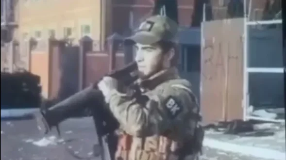The footage, which appeared on pro-war Telegram channels on Monday, shows a man wearing the uniform of the Akhmat special forces, a Chechen military unit, taking aim at a two-storey building and firing.