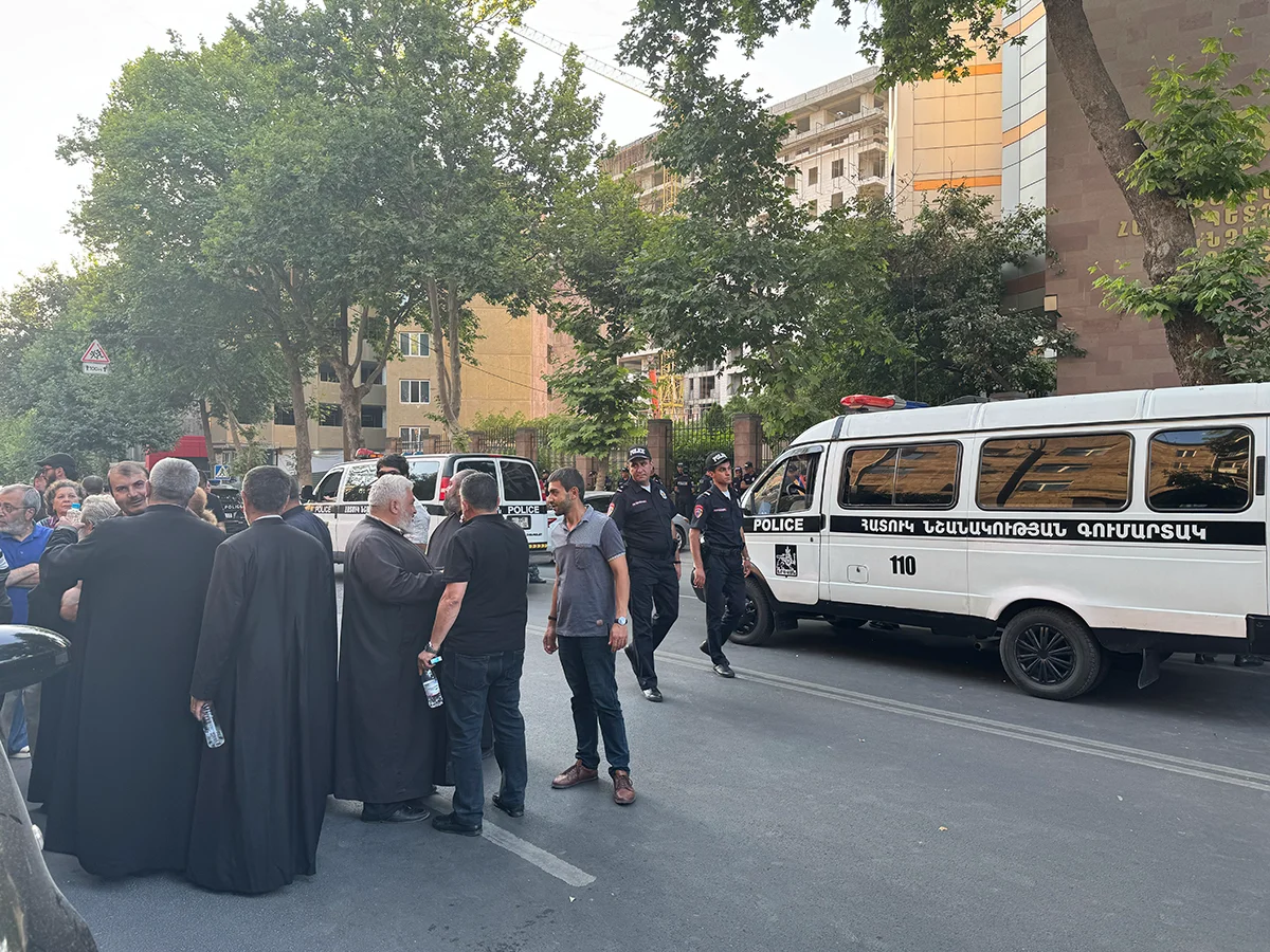 Пройдя вместе с верующими несколько минут пешком, он сел в машину и в этот раз все-таки уехал в СК. К моменту его прибытия у здания ведомства в Ереване собралось много полиции, а также несколько сотен сторонников и представителей оппозиции.