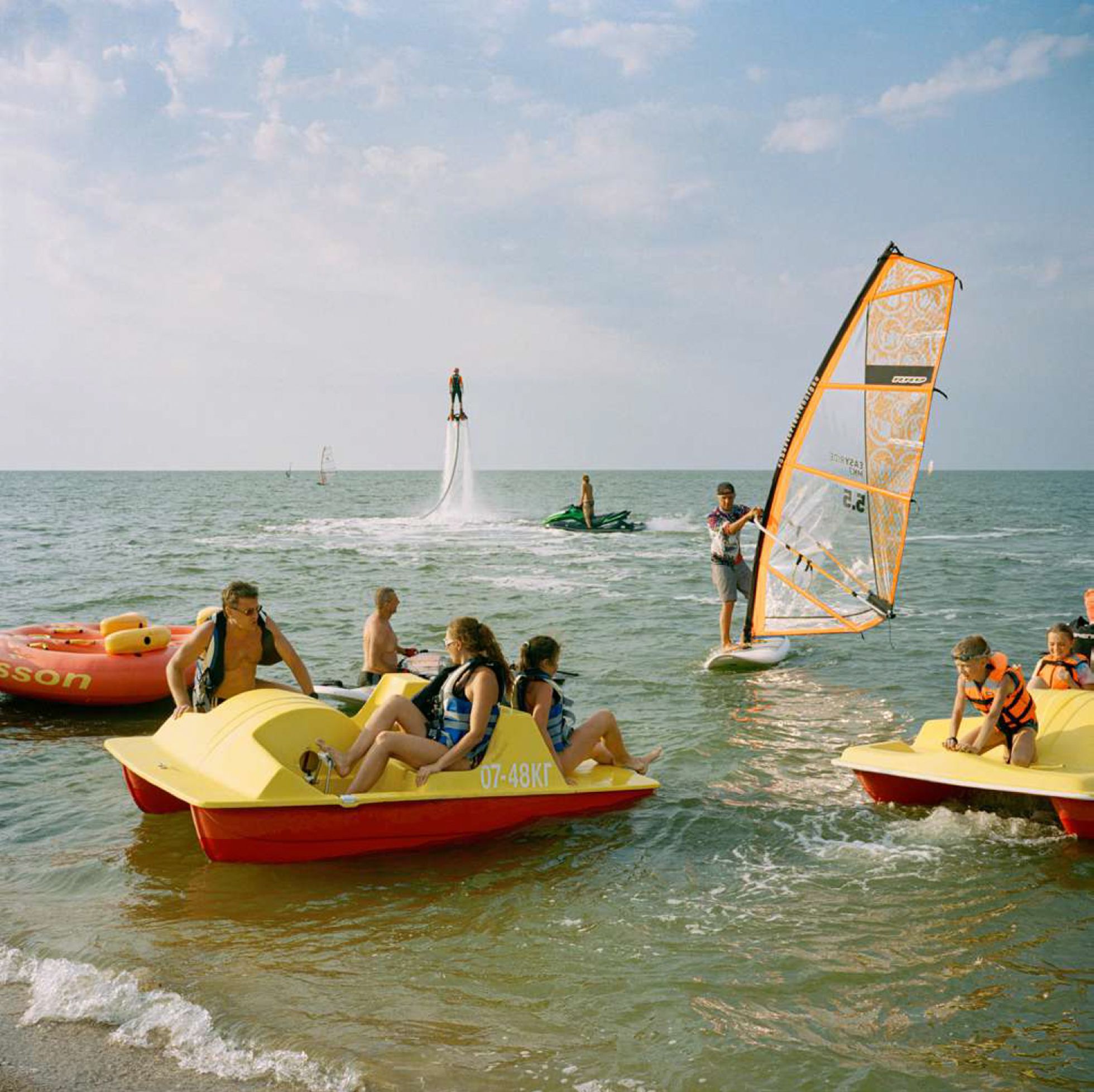 В воспоминаниях о моем первом лете в России — сиреневые отблески на бирюзовой воде, последние купальщики на мелководье, ароматный дым шашлыков и звон стаканов, знаменующий конец солнечного дня. Этот уникальный мягкий и красочный свет стал моим проводником на берегах Азовского моря, куда я возвращаюсь каждое лето с 2019 года. <…>