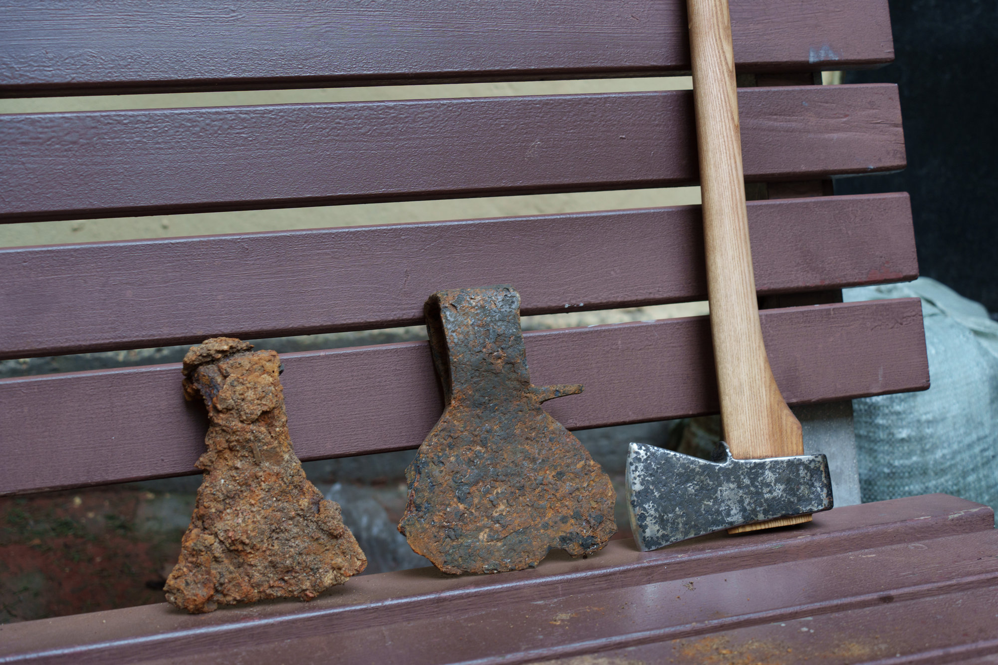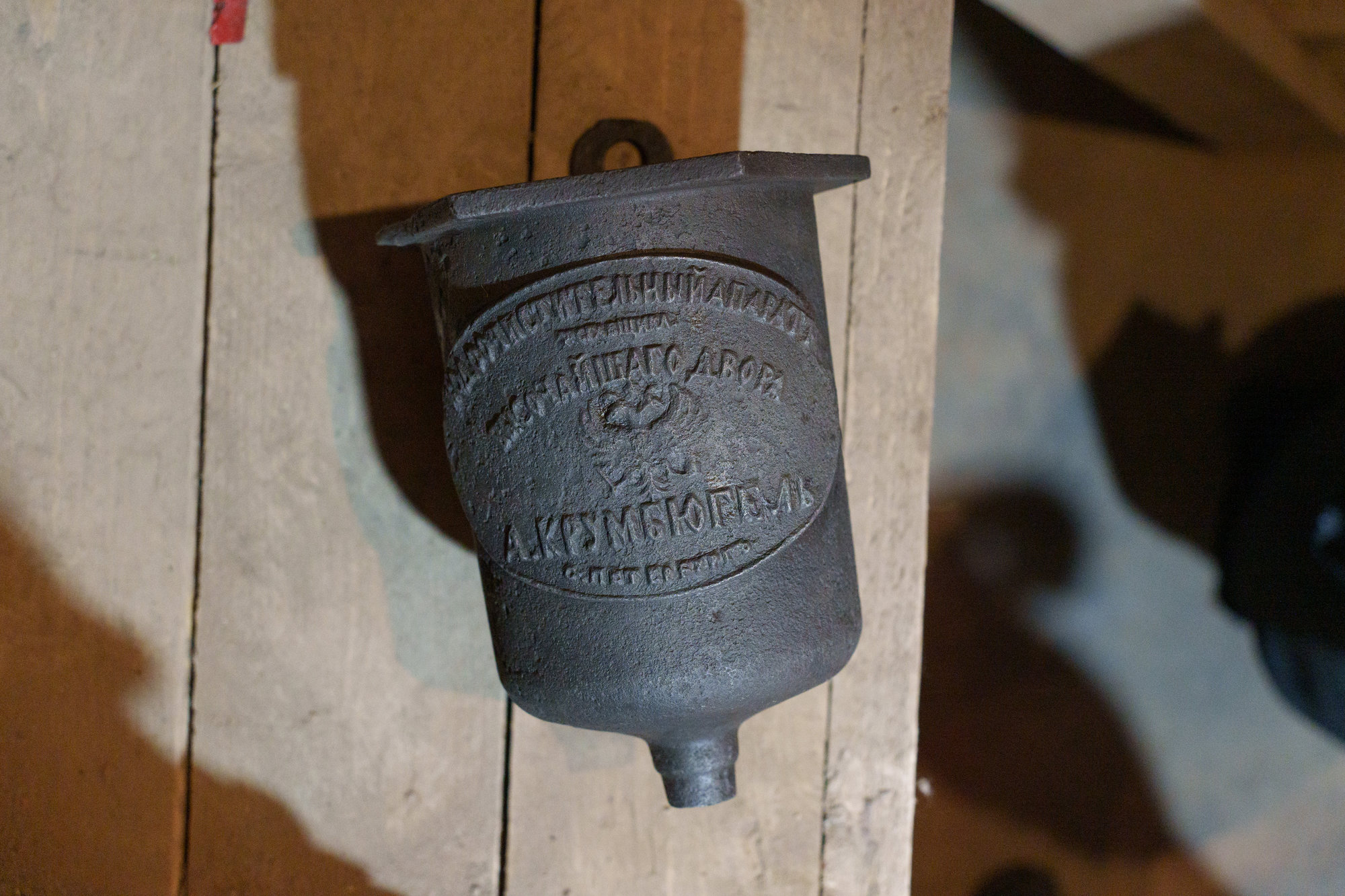 В земле нашли дореволюционные предметы быта: чугунный водоочистительный аппарат от фабрики «Крумбюгель», монеты, подковы, стаканы, клейменые орлами кирпичи, покрывшиеся вековым слоем грязи и ржавчины лопаты и топоры. Часть находок уже помог очистить реставратор.