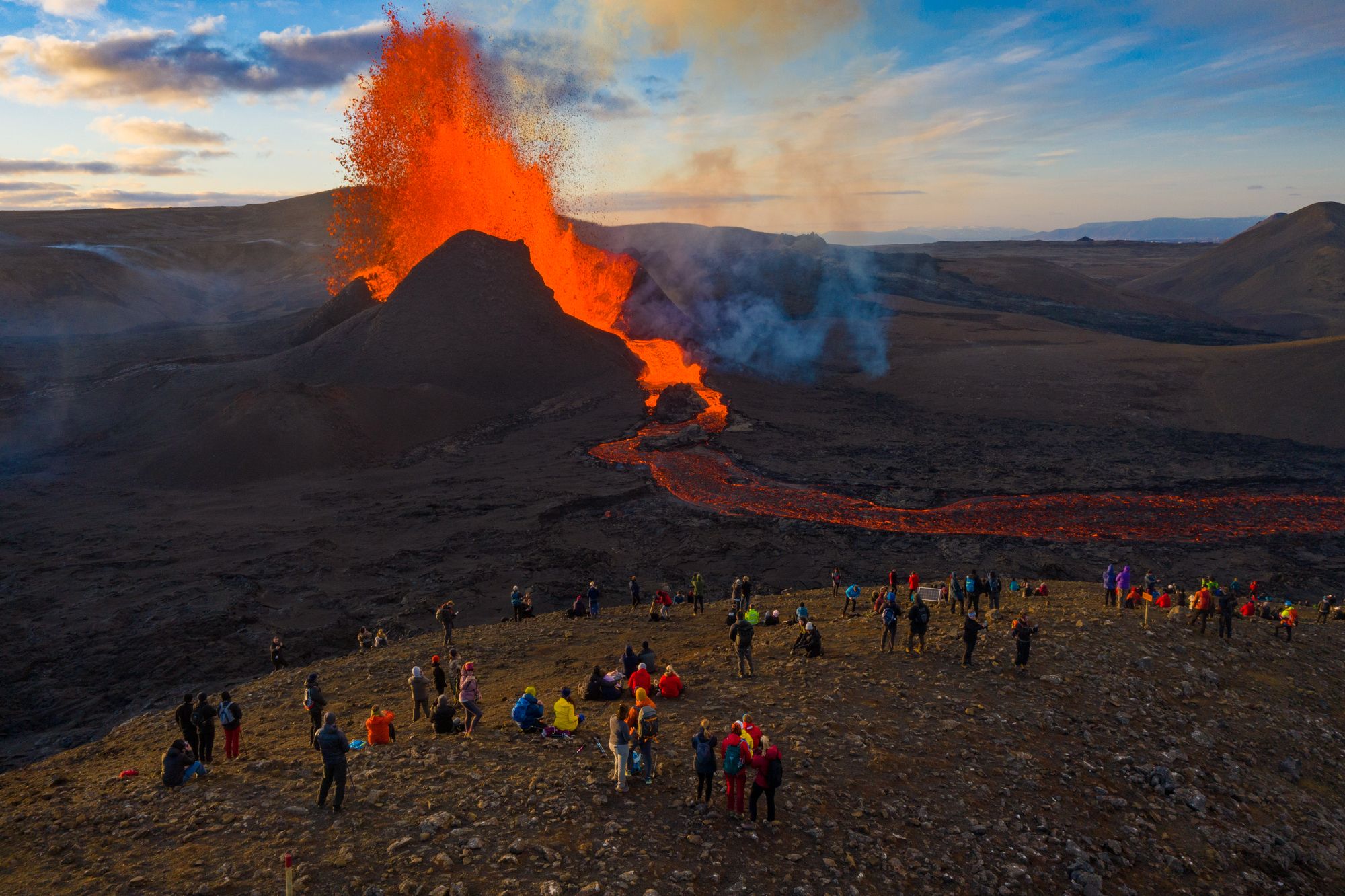 Это уже 12-е извержение на Рейкьянесе с 2021 года, хотя до этого вулканы полуострова спали 800 лет. Из-за вулканической активности в 2023 году был эвакуирован городок Гриндавик, стоящий в нескольких километрах от кратера Сундхнукур. С тех пор он так и не вернулся к прежней жизни. Город, где раньше жили четыре тысячи человек, не закрыт для посещения, но практически безлюден, хотя некоторые жители все же вернулись в свои дома, а близлежащий геотермальный курорт «Голубая лагуна» по-прежнему популярен среди туристов.