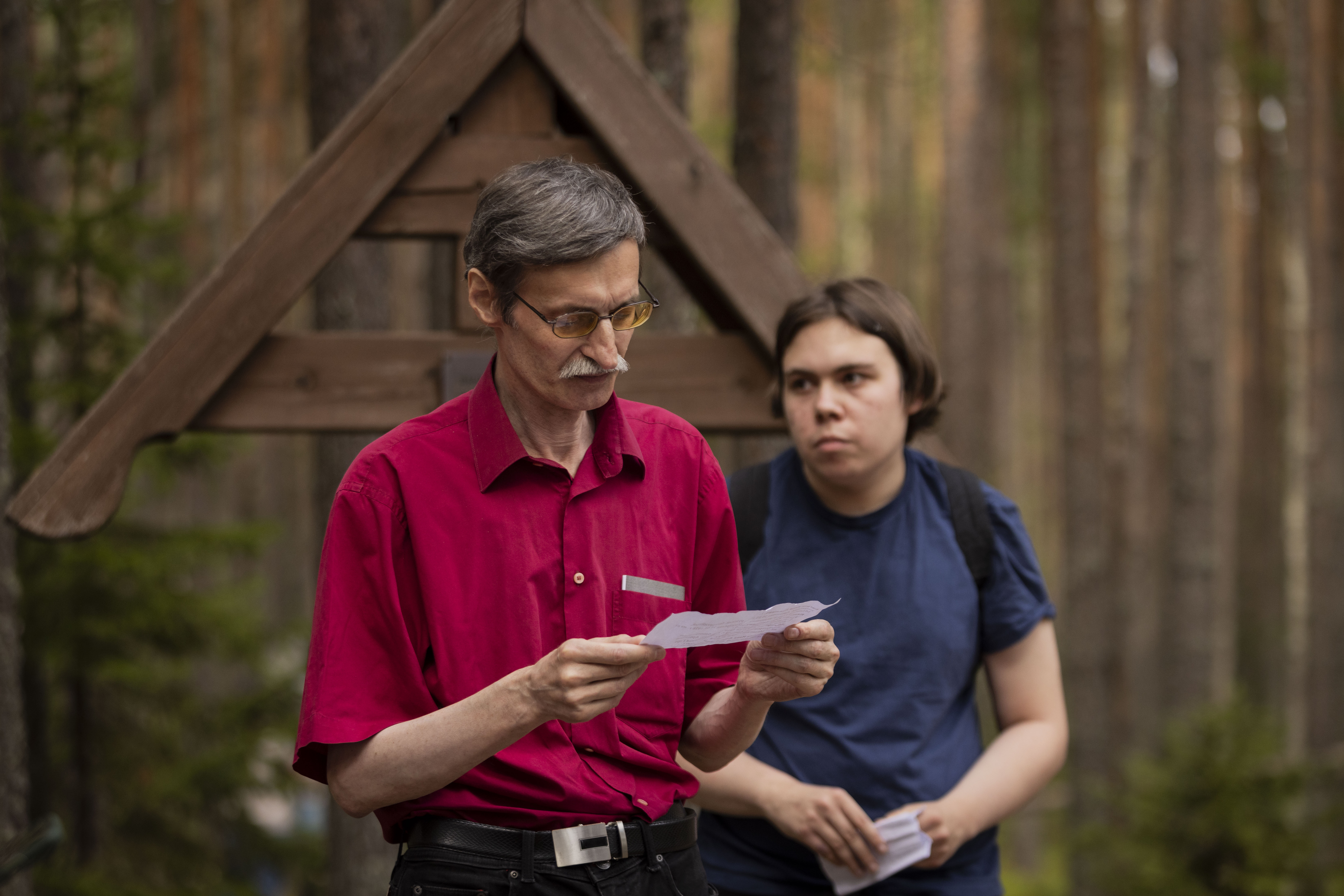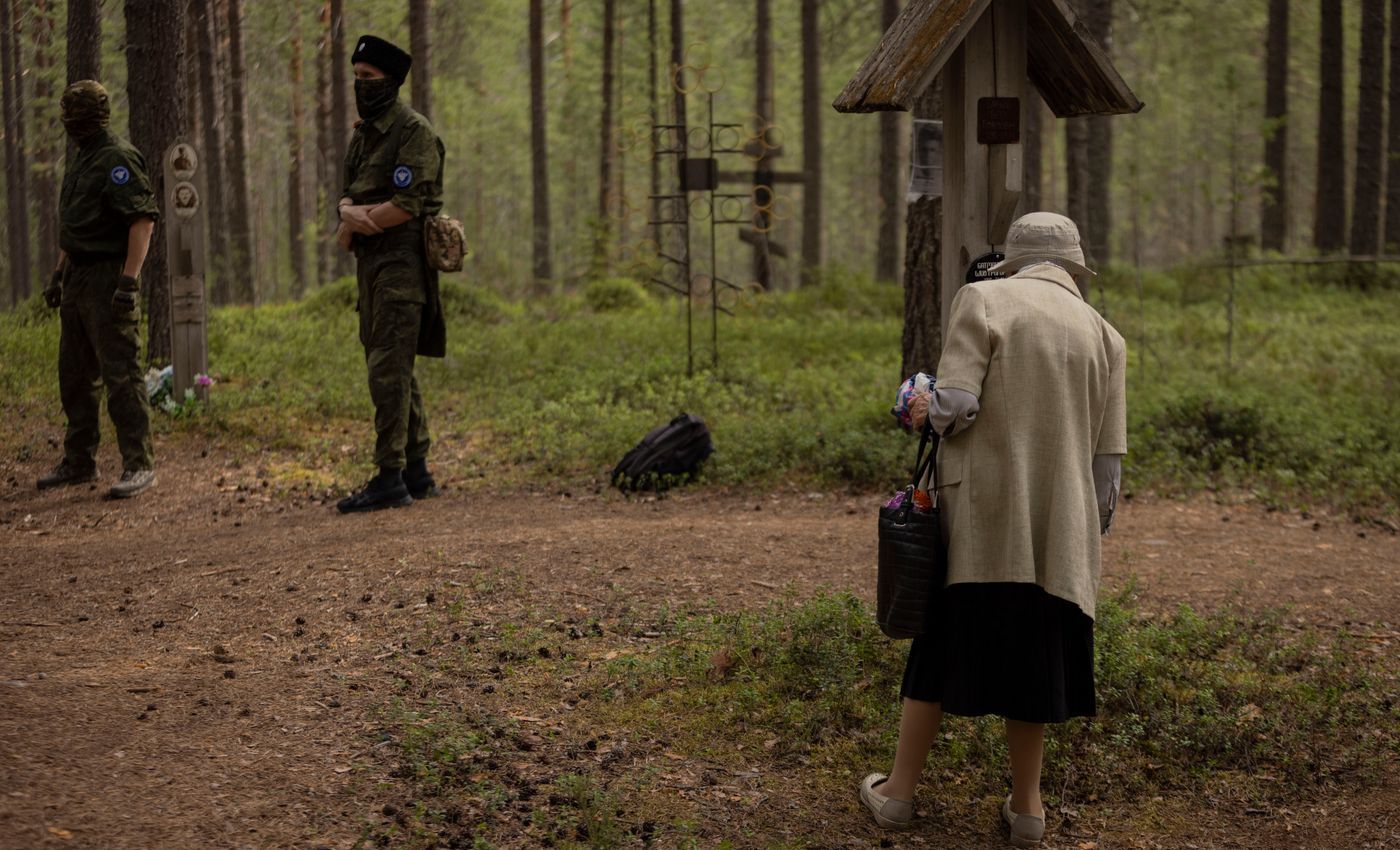 The Sandarmokh forest in Karelia, one of Russia’s Northern regions, is the place of one of the largest mass graves of the victims of Stalin’s Great Purge. Since historians uncovered the site in the late 1990s, the remains of more than 6,000 people executed by the NKVD in 1937–1939 have been found here. On August 5, the International Remembrance Day for the Victims of Political Repression, a memorial is held annually in Sandarmokh. This year, it drew up to a hundred participants, according to Mediazona’s estimates. About 40 instigators in homemade uniforms, balaclavas and Cossack hats tried to hinder them. As a result, the mourning event turned into an unexpected forest debate between supporters and opponents of the war against Ukraine. Here is Mediazona’s report.