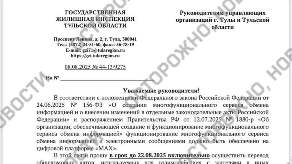 «Осторожно, новости»: Госжилинспекция потребовала перевести домовые чаты в мессенджер Max