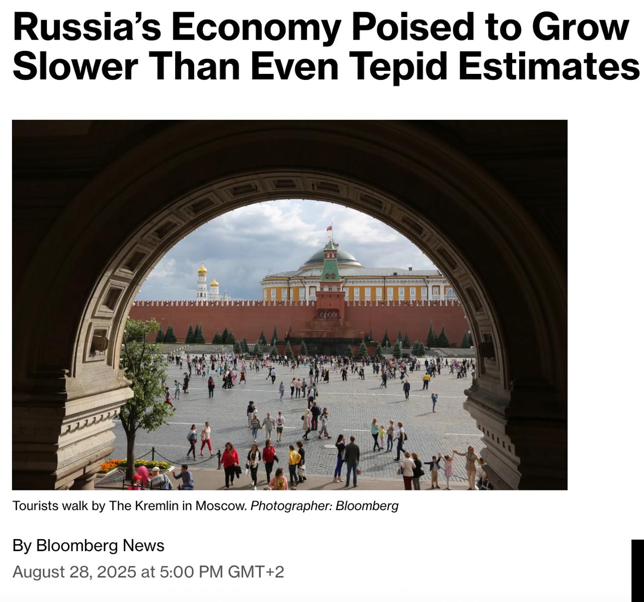 Детали. Согласно обнародованным накануне данным Минэкономразвития, за первые семь месяцев ВВП России вырос на 1,1%. Это лишь немного выше нижней границы прогноза ЦБ на 2025 год, ожидавшего рост экономики по итогам года в 1−2%. Прогноз ЦБ — самый консервативный из официальных прогнозов российских властей.