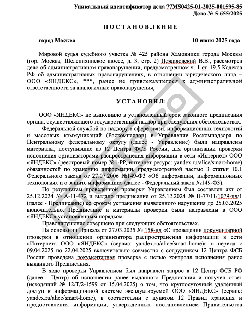- ️Протокол о невыполнении предписания спецслужба составила 28 мая. Решение суда было вынесено 10 июня, однако профильные ресурсы обратили на него внимание только в среду.