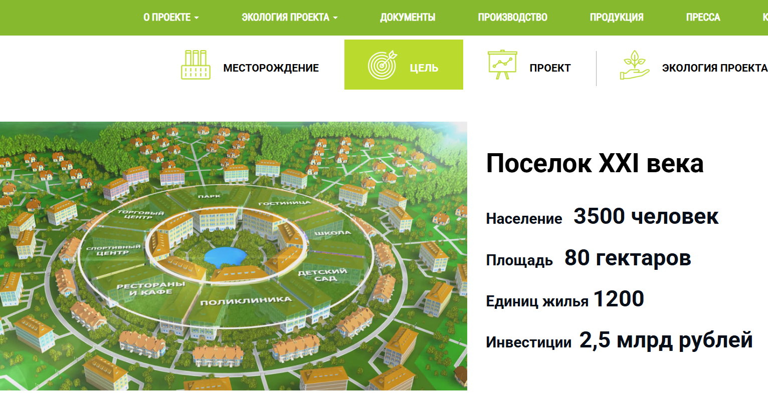 - ️В рамках проекта планировалось построить горно-металлургический комбинат, на котором должны были работать полторы тысячи человек. Компания обещала также возвести для работников «поселок XXI века» площадью 80 гектаров со школой и детсадом, поликлиникой, гостиницей, спортцентром, ресторанами и кафе.