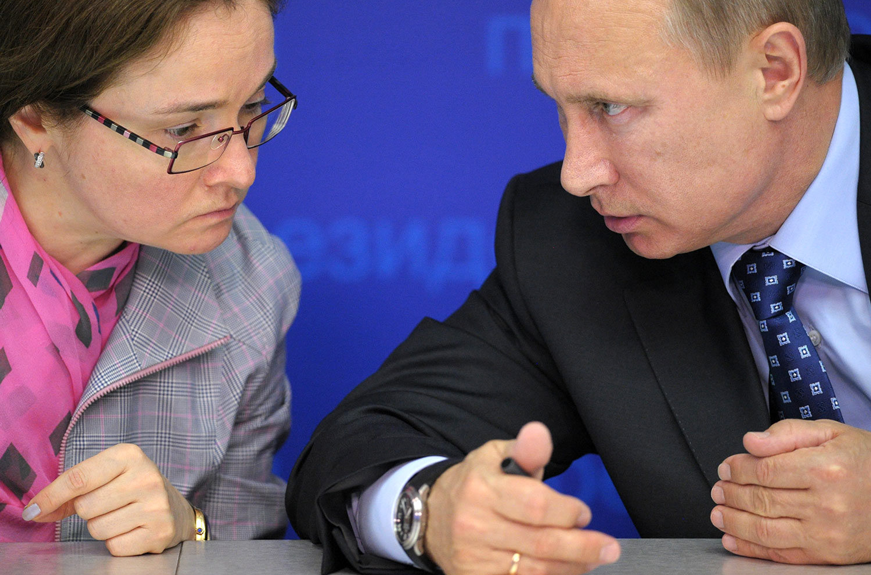 Vladimir Putin and Governor of the Bank of Russia Elvira Nabiullina