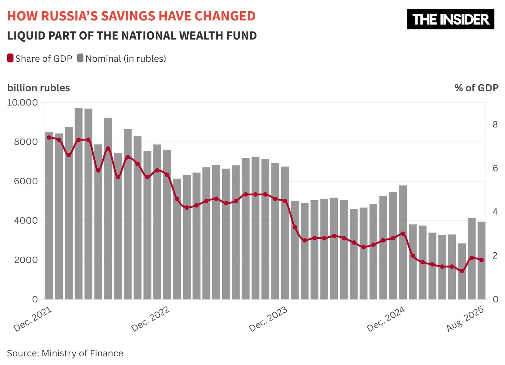 Economists believe the economy will plunge into a prolonged recession in October 2025: “The contraction in the physical volume of GDP (over a rolling year) could continue for more than four consecutive quarters.” Even the pro-government Institute of National Economic Forecasting of the Russian Academy of Sciences admits the decline has already begun: Russia's GDP appears to grow only when compared to the same quarters of the previous year, but declines compared to the last quarter of 2024.