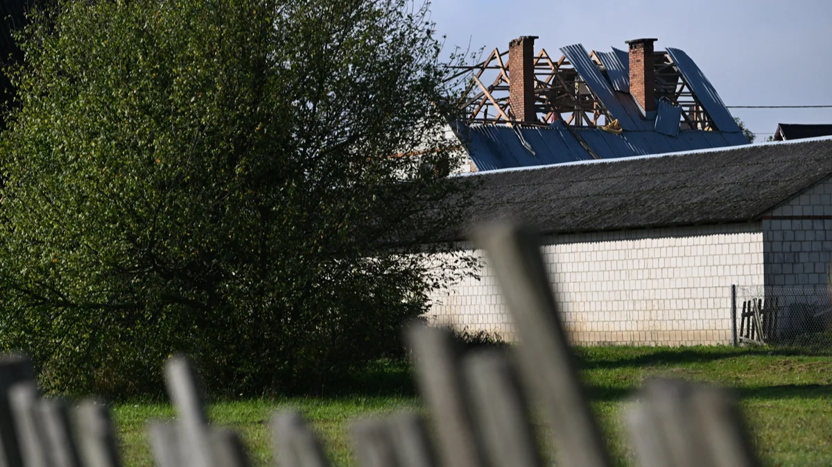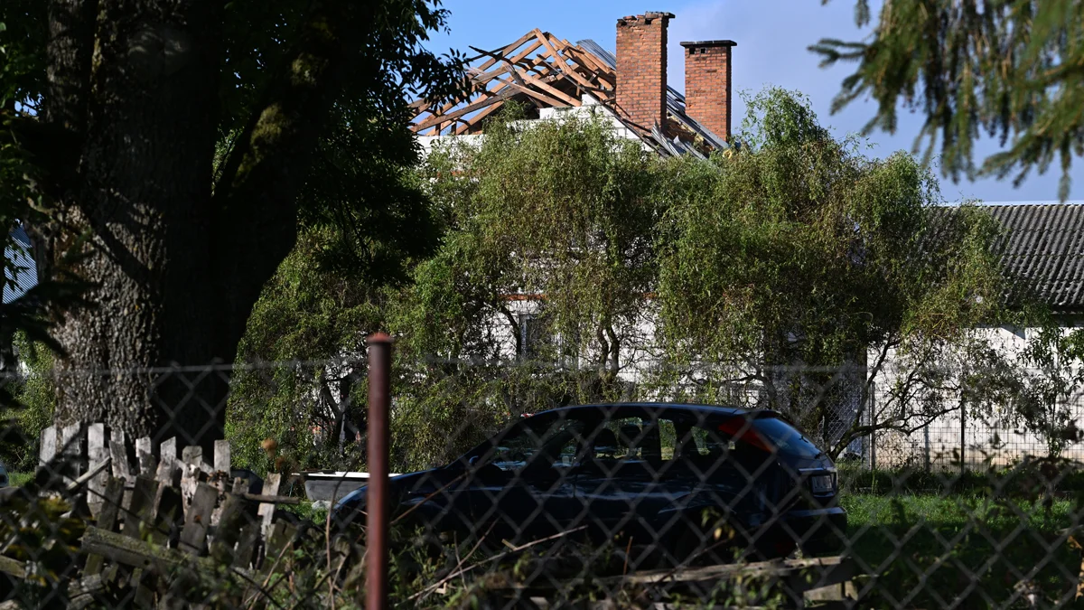 Крыша жилого дома, разрушенного российским дроном в Вырыки, Польша, 10 сентября 2025 года. Фото: Wojtek Jargilo / EPA