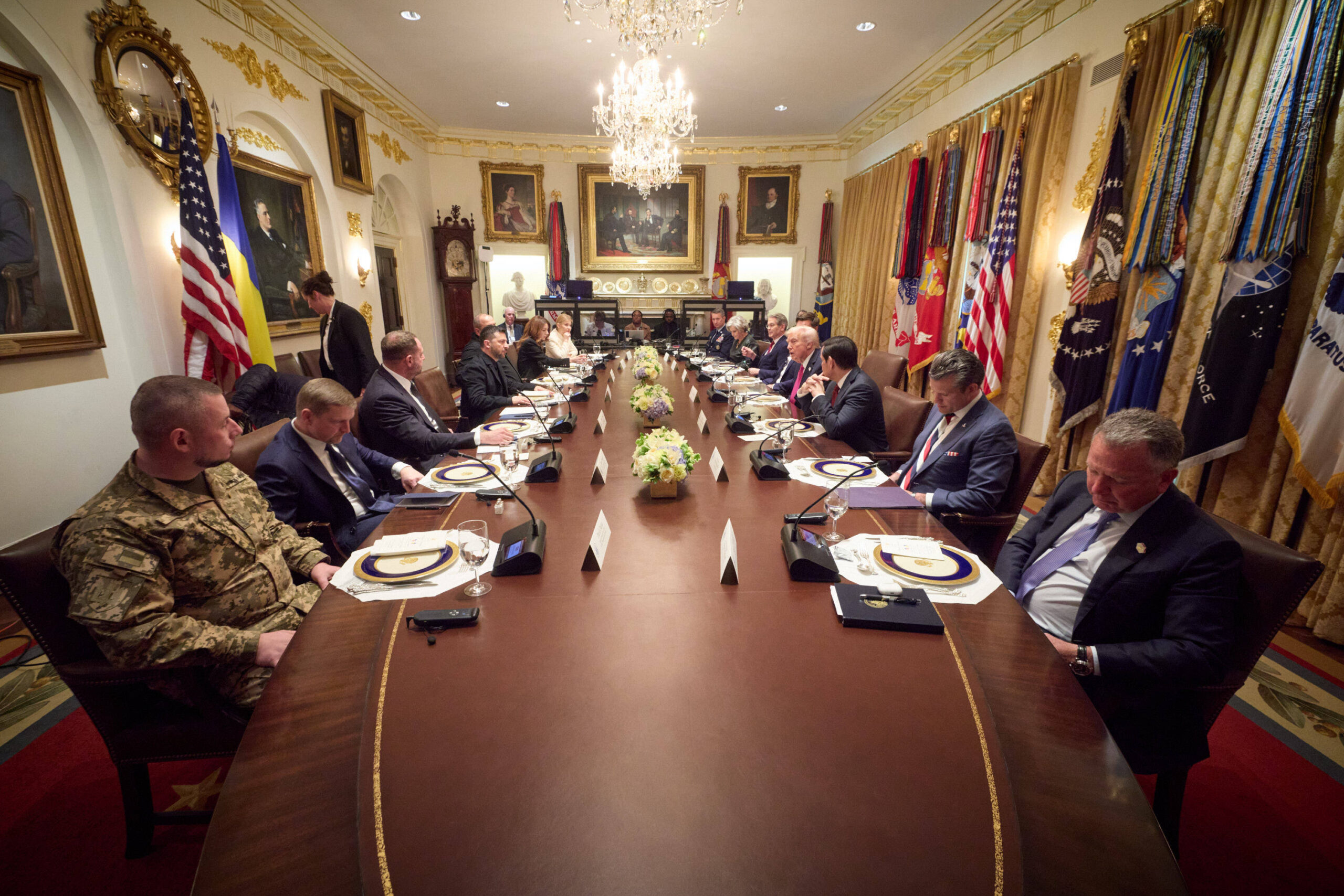 Разговор проходил в неформальной обстановке — за обедом в зале заседаний кабинета министров. Главными темами стали война в Украине, предстоящие переговоры Трампа с Путиным и новые поставки вооружений Киеву, включая крылатые ракеты Tomahawk.