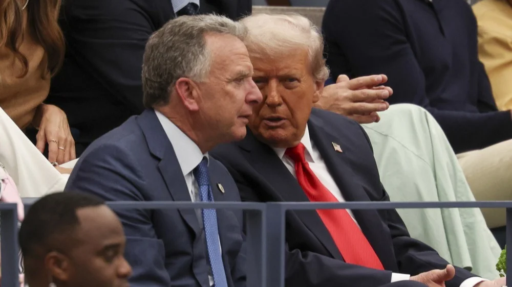 Steve Witkoff and Donald Trump watch the final of the US Open Tennis Championships in New York, 7 September 2025. EPA/SARAH YENESEL